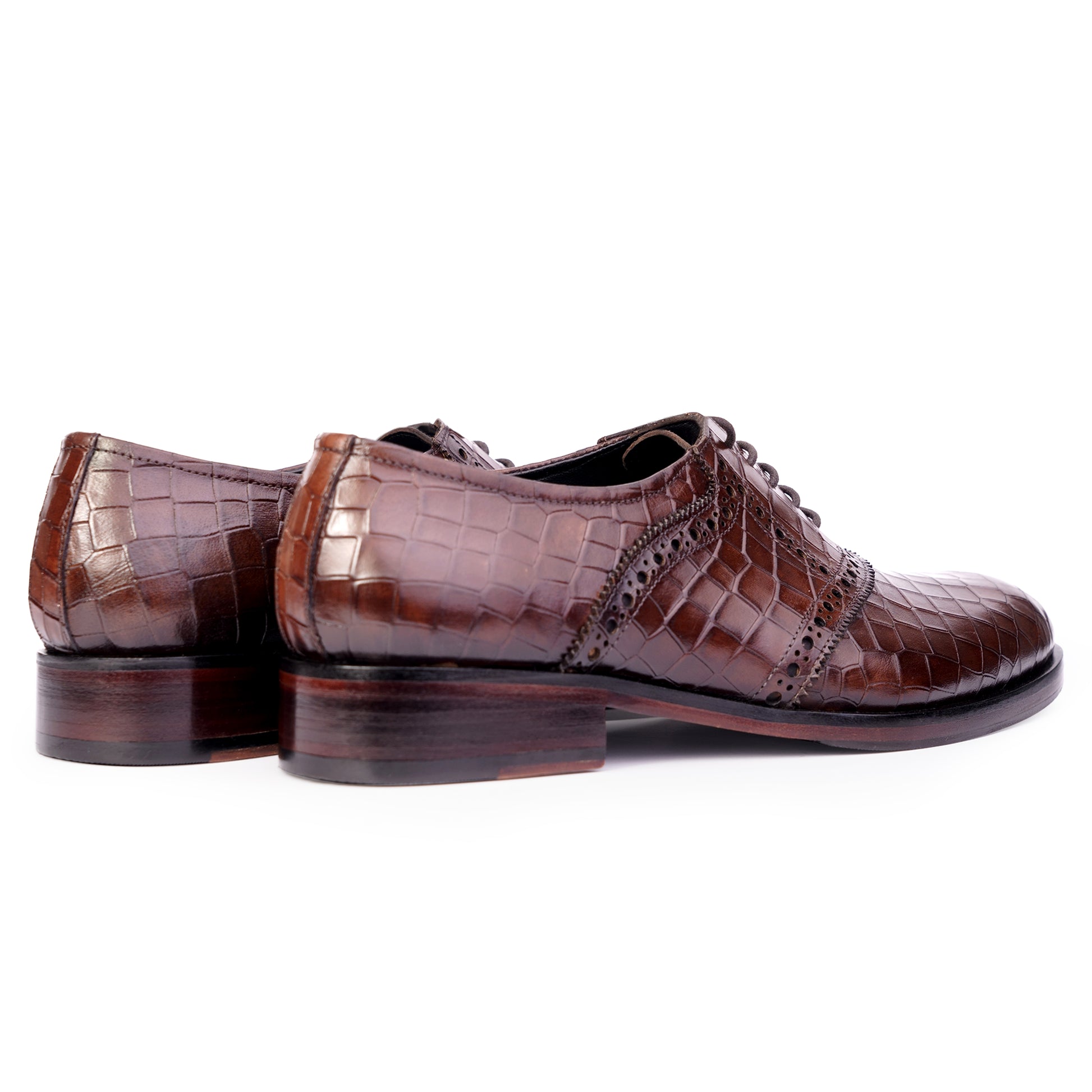 Saddle Shoes in Brown croc embossed leather from Manwalk